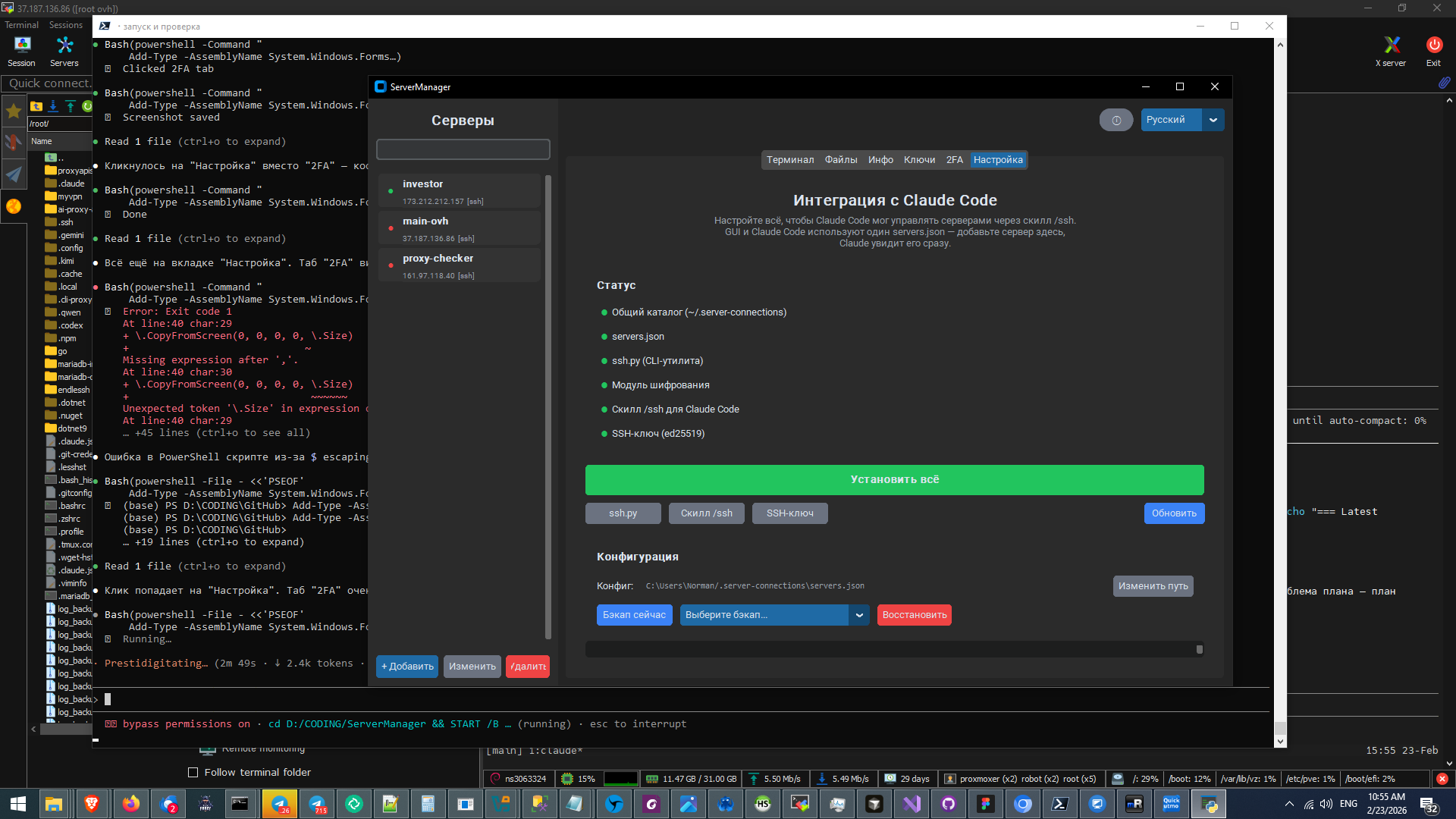 - Add network interface selection per server (VPN/multi-NIC support) - Fix "Install Everything" button hanging on error - Add interactive SSH terminal with PTY (pyte + xterm-256color) - Add release.py for automated versioning and changelog generation - Add CLAUDE.md with project instructions - Add screenshots and release binaries for v1.1–v1.4 Co-Authored-By: Claude Opus 4.6 <noreply@anthropic.com>